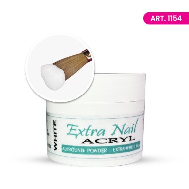 Akrilni extra beli prah za french, nadogradnju i izlivanje  noktiju. Lak za rad, srednje brzine stvrdnjavanja.  Koristi se sa Extra nail liquid-om. Samo za profesionalnu upotrebu. Zemlja uvoza: Holandija, EU. Uvoznik: "Daplex" doo, Beograd