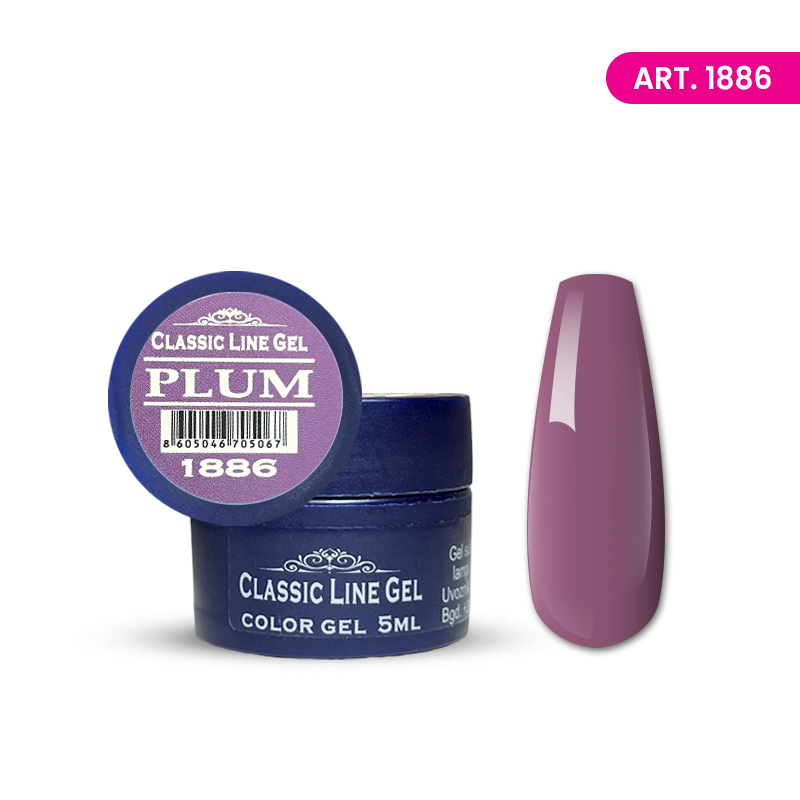 CLASSIC LINE color gel je gel u boji  za dekoraciju nokta.Ima dobru porkrivnu moć i dugo traje na noktima.  Uputstvo za upotrebu:  Gel se maže u dva sloja i svaki sloj se suši u lampi.UV - 120 sek. UV/LED - 60 sek. Nakon boje je potrebno staviti Top Coat i naša je preporuka Glossy top gel br.4. Made in EU.