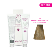 Young italijanska farba sa ceramidima za kosu No.8.3 Biondo chiaro dorato - Light golden blond. Pakovanje farbe je 100 ml. Meša se sa 1:1,5 ml hidrogena (na 100 ml farbe ide 150 ml hidrogena ili 50 ml farbe sa 75 ml hidrogena). Zemlja porekla: Italija  *Važna napomena za Young farbe i celu kolekciju  rađene za EU tržište. Kvalitet farbi kod nas i u EU je isti. Nema razlike u kvalitetu proizvoda. Zato su svi oduševljeni sa ovim farbama i svim proizvodima iz ove kolekcije. Kosa je sjajna i negovana. U YOUNG kolekciji postoje i toneri/korektori, i najnovije fenomenalni blanš 9 tonova!
